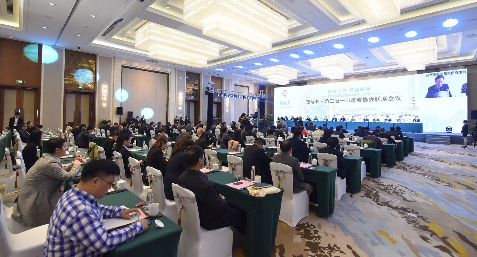日前,首届长三角三省一市旅游协会联席会议在苏州召开。本次会议由沪苏浙皖三省一市旅游协会共同主办,中国旅游协会副会长兼秘书长张润钢、三省一市曾经分管过旅游工作的省(市)老领导赵雯、张卫国、王建满、花建慧和四地文化和旅游厅局负责同志、旅游协会会长、重点旅游城市、企业代表近百人齐聚苏州,共商推动长三角旅游一体化大计。中国旅游协会对本次会议高度重视,秉持为会员服务的宗旨,积极推动地方旅游大发展。艺创公司董事长陈岩以浙江省旅游协会常务副会长的身份出席了此次会议。