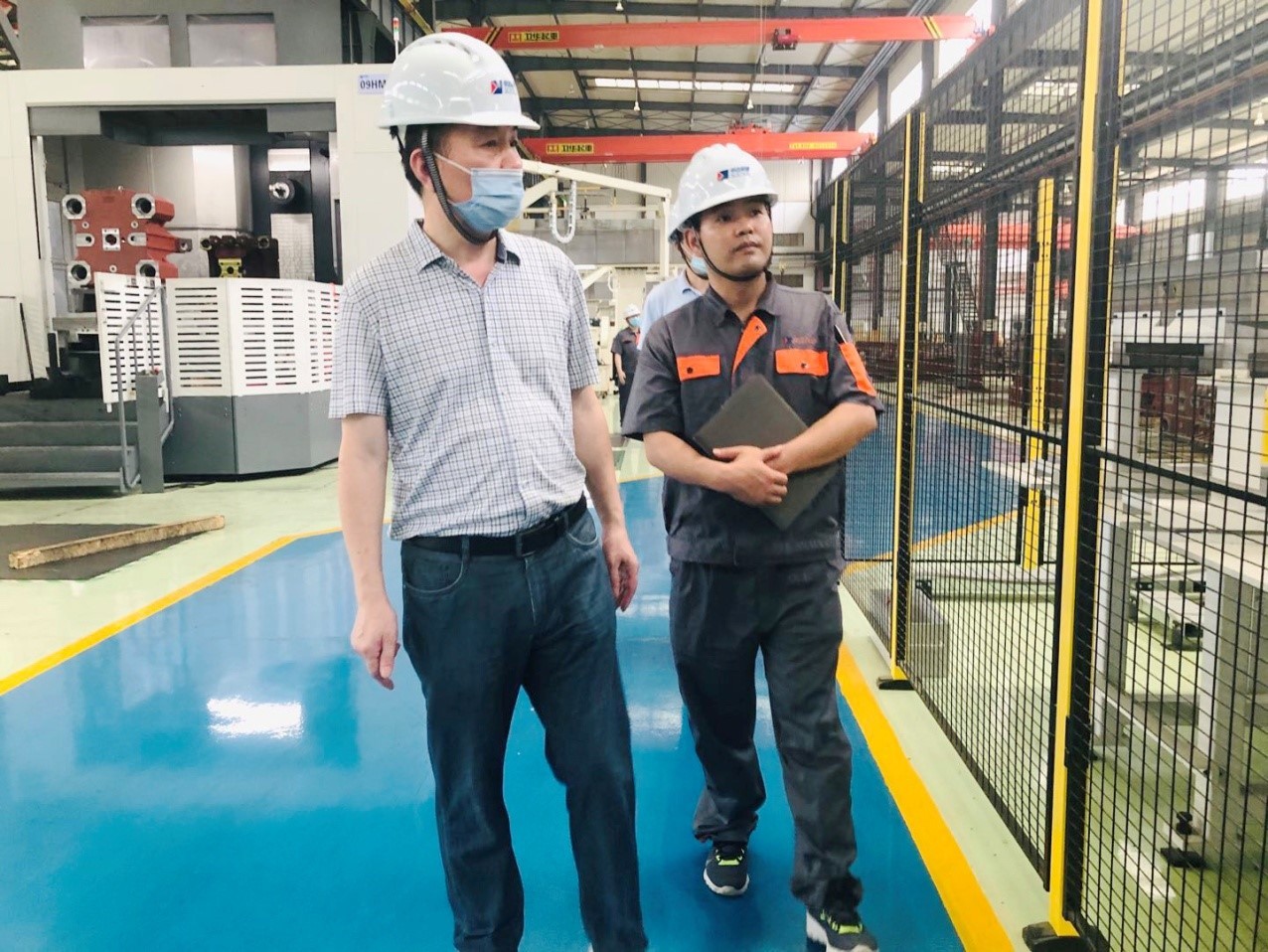 祝慧明一行实地察看了德清申达公司装配车间、涂装车间和金加工车间,就申达公司车间管理、质量管理、体系建设等情况进行了现场交流和指导。