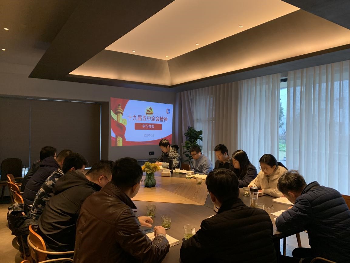 支部副书记程江明带领全体党员深入学习讨论十九届五中全会精神和省委十四届八次全会精神。支委委员丁依晟、金志春分别结合自身体会讲党课,从基层党员干部应当具备的素质、如何做好皮塑公司十四五规划等方面作了分享。
