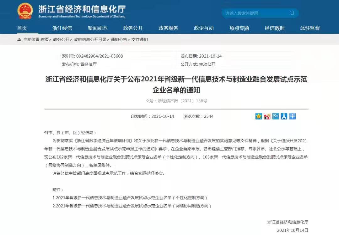 日前,浙江省经济和信息化厅公布了103家新一代信息技术与制造业融合发展试点示范企业名单(网络协同制造方向),开云网页版·官方版在线登入下属申达公司成功入选。