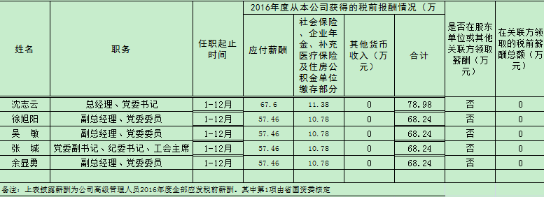 浙江开云网页版·官方版在线登入公司高级管理人员2016年度薪酬情况