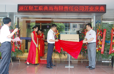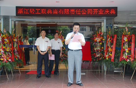 8月9日上午,浙江轻工联典当有限责任公司开业庆典仪式在杭州市惠民路22号隆重举行。省典当行业协会会长王鹤群和集团公司副总经理、轻工联典当公司董事长吴敏一起为典当公司揭牌、剪彩。