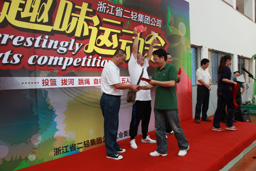 9月23日,集团公司工会在浙江工业大学体育馆成功举办了首届趣味运动会,系统内11家单位300多名职工参加了5人6足、自行车慢骑、跳长绳、定点投篮、拔河等5个项目比赛。申达机器制造股份有限公司代表队豪取三个项目冠军,二轻房地产开发有限公司代表队、皮革塑料有限公司代表队分别斩获一项比赛冠军,汇孚集团有限公司、华江科技发展有限公司获优秀组织奖。集团公司副总经理徐旭阳,党委副书记、工会主席张城为获奖单位颁奖。