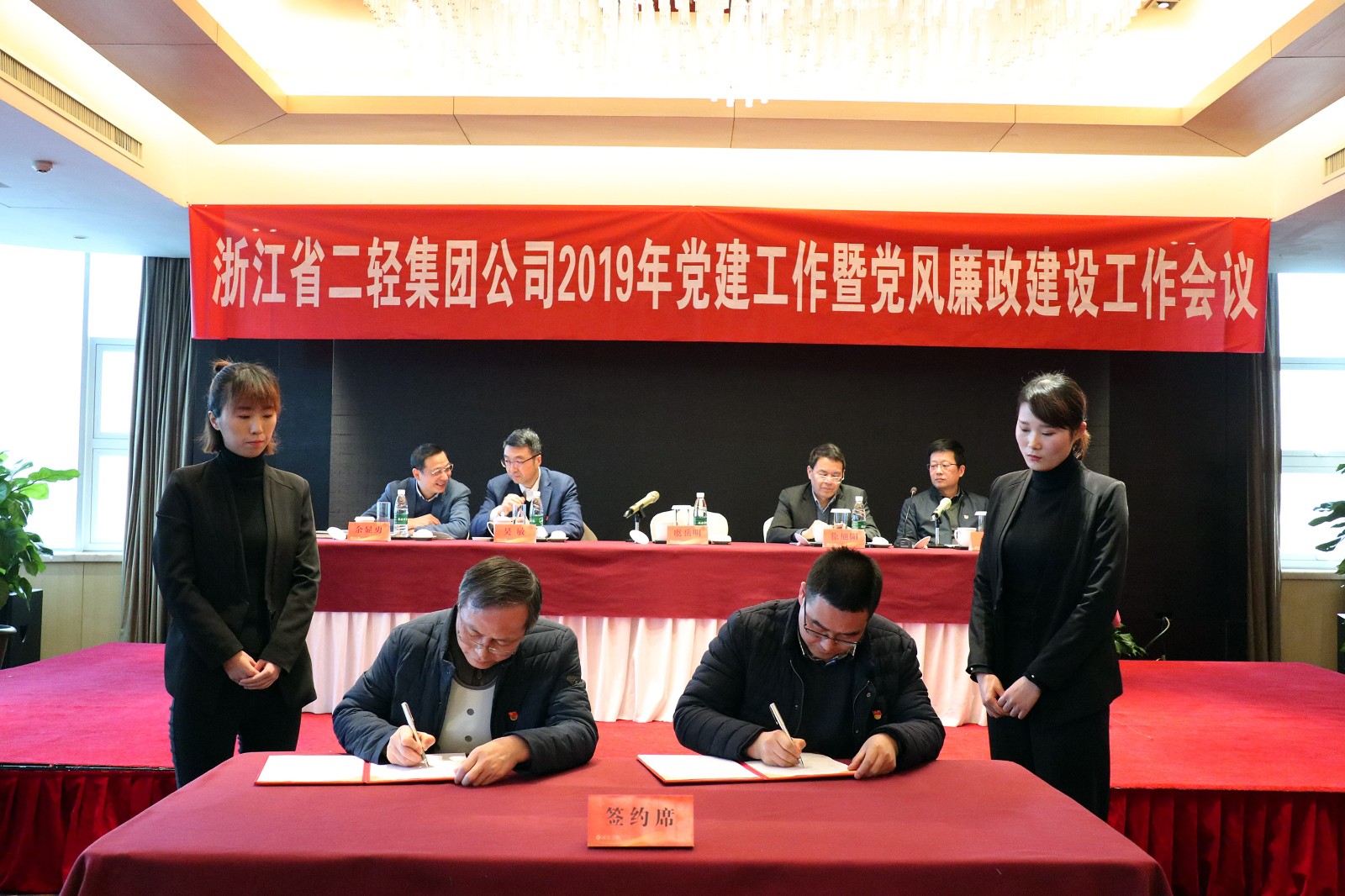 会上,虞岳明同志代表集团党委与各二级单位党组织签订了2019年度党建工作责任书和党风廉政建设责任书。